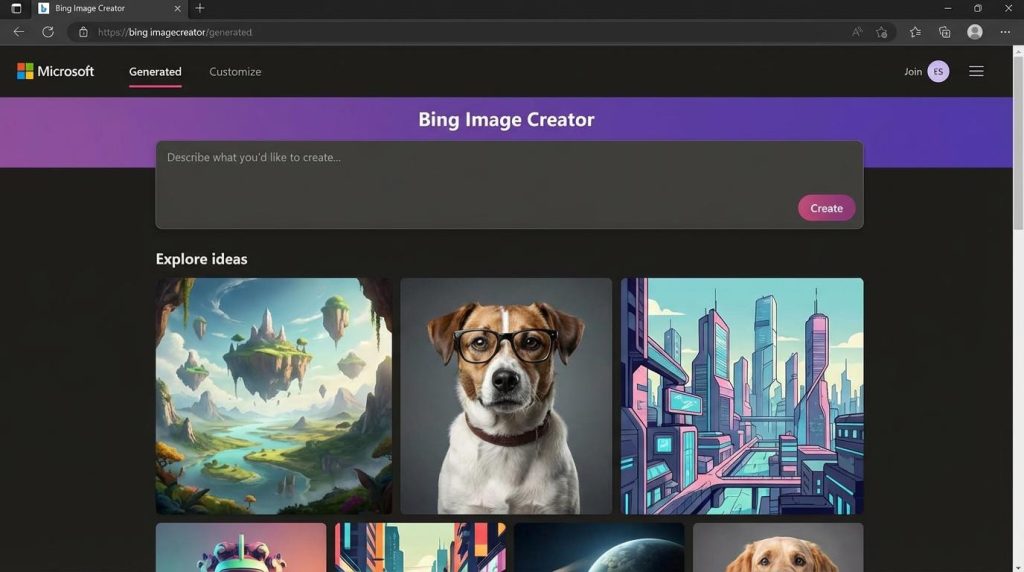Bing Image Creator DALL-E 3 photorealism interface screenshot