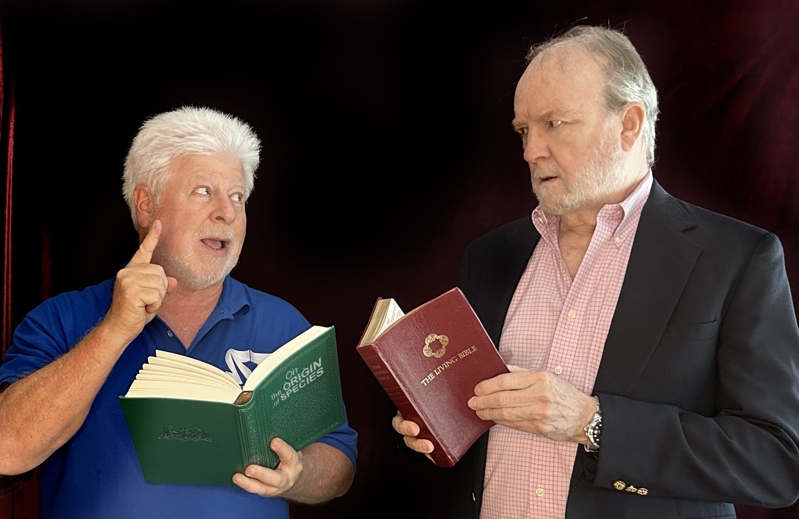 She brings with her the current expert on intelligent design. A man who purports to have scientifically proved that for man to have evolved from primordial goo, there could be no other explanation for it to have happened in the proposed timeline than for it to have been guided by the hand of god. Oh, and he also believes, of course, that Evolution is just a theory…unproven. He has created a syllabus on this nutty proposition, and it is this class that the school board must vote for. To rebut his position is another author, studied in his field and well positioned to examine this erroneous argument. His adopted brother and fierce critic of extreme religious doctrine taught in schools. They have debated before, but it’s been 20 years since they have been in the same room. So tensions are high!