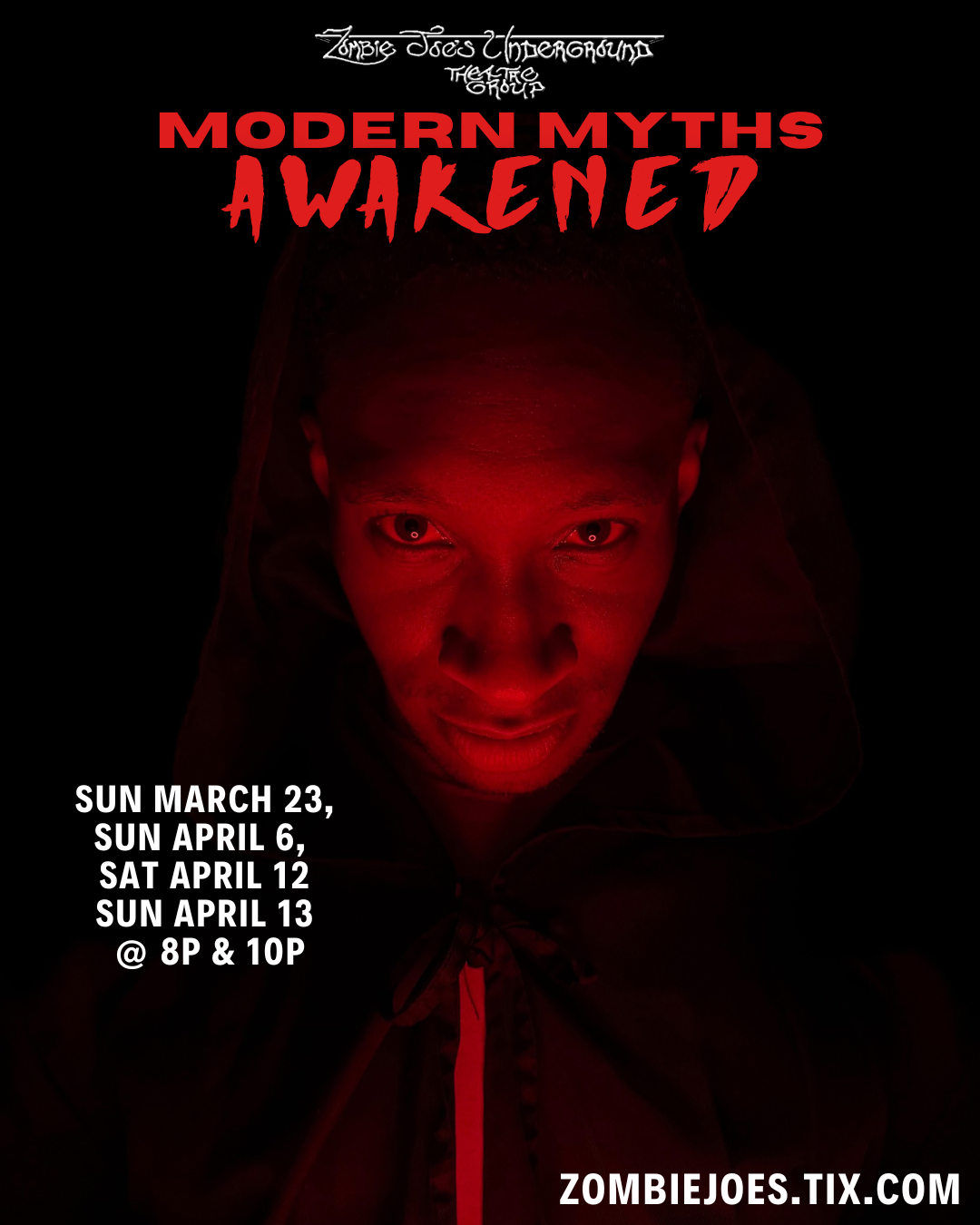 Prepare for an unrelenting journey into the darkest corners of folklore as Zombie Joe’s Underground Theatre Group brings audiences MODERN MYTHS AWAKENED, an all-new horror experience that breathes terrifying new life into some of the world’s most infamous urban legends.