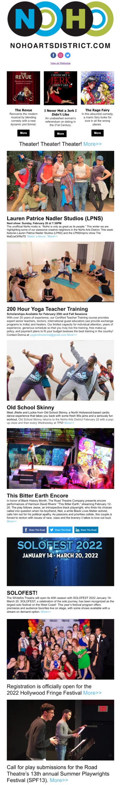 NoHo News. Should Everything Be A Musical? Yoga NoHo Center. Old School Skinny. Rage Fairy. Never Met A Jerk I Didn’t Like. SPF13 Call. Makin’ A Movie. This Bitter Earth. SOLOFEST 2022. #KeepNoHoArtsy.