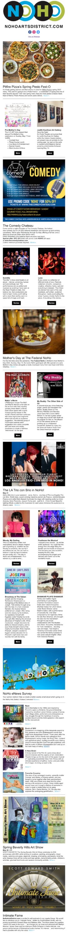 The NoHo News for May 4: NoHo News: Pesto Fest-O. Comedy Chateau. Mother’s Day at The Federal. Trio con Brio. Spring Beverly Hills Art Show. So Much Theatre. #KeepNoHoArtsy